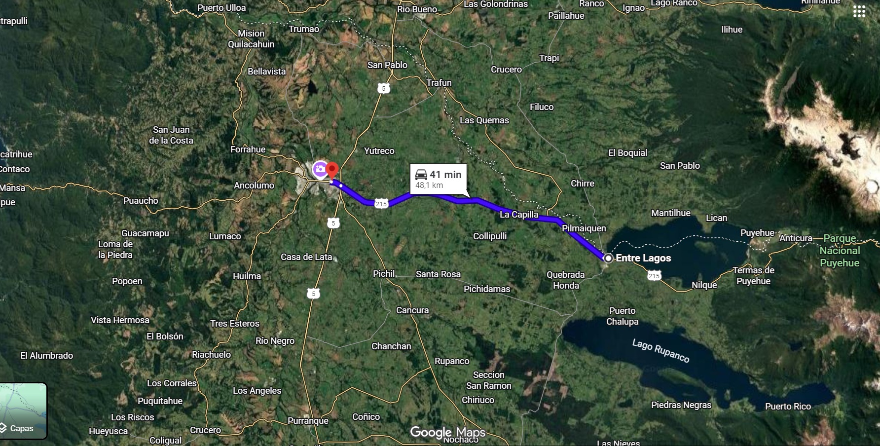 Entre Lagos es la capital comunal de Puyehue, ubicada estratégicamente entre el Lago Puyehue y el Lago Rupanco, en la Provincia de Osorno. Funciona como un nodo clave del corredor internacional hacia Argentina, conectando con Villa La Angostura a través del Paso Cardenal Samoré.