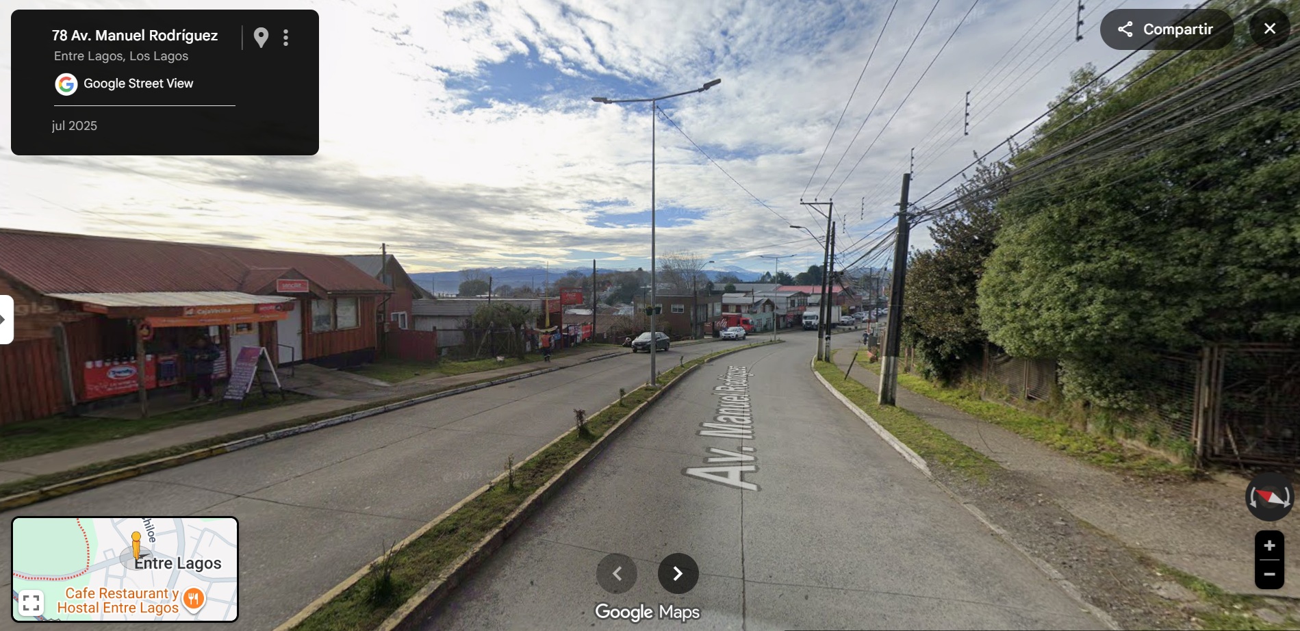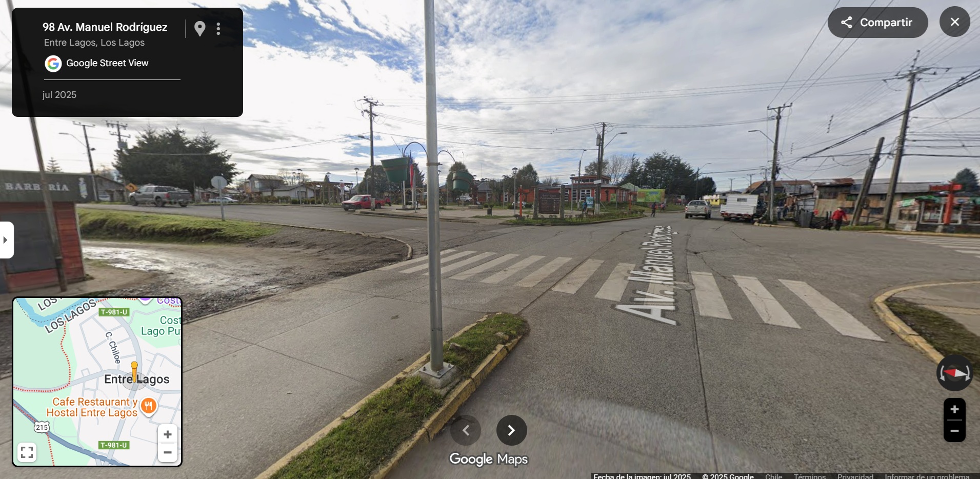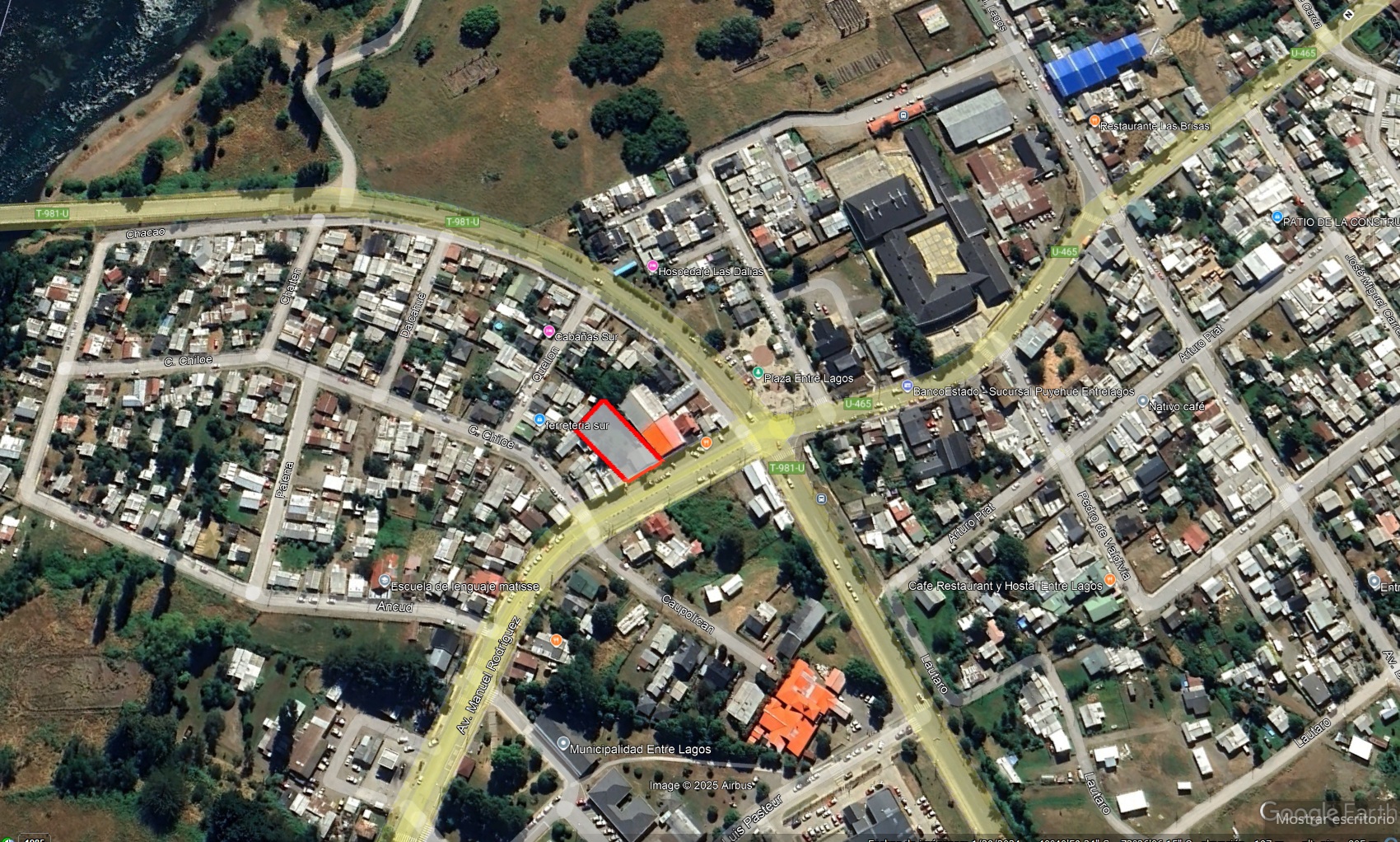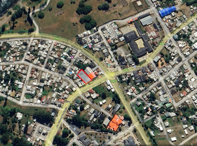 Se ofrece terreno urbano de 738 m², ubicado en primera línea de calle Manuel Rodríguez, eje comercial principal de la ciudad de Entre Lagos, en pleno corazón del comercio local y rodeado de servicios esenciales como centros de salud, bancos, colegios y equipamiento urbano.